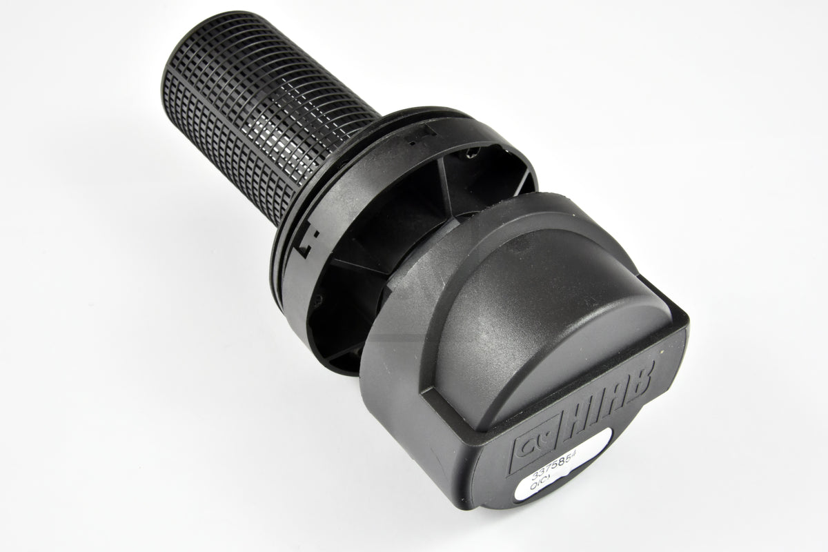 Filler cap 3375854 is used on the hydraulic system of various Hiab loader cranes and related equipment. It forms part of the hydraulic pressure filter assembly and helps maintain a sealed, protected oil system.